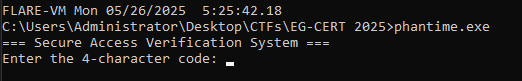 In this write up we’ll be solving the Phantime reverse engineering challenge from the EGCERT Qualifications CTF of 2025! (Obtained First Blood)
