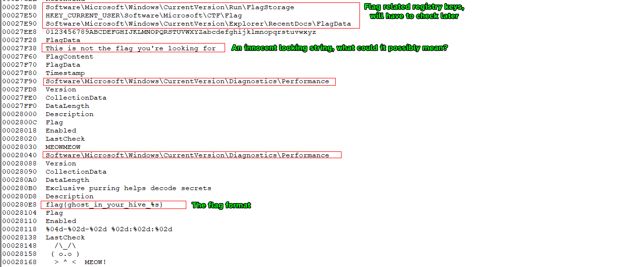 We can go ahead and go inside the registry and obtain this data and XOR it with MEOWMEOW to obtain the real flag.