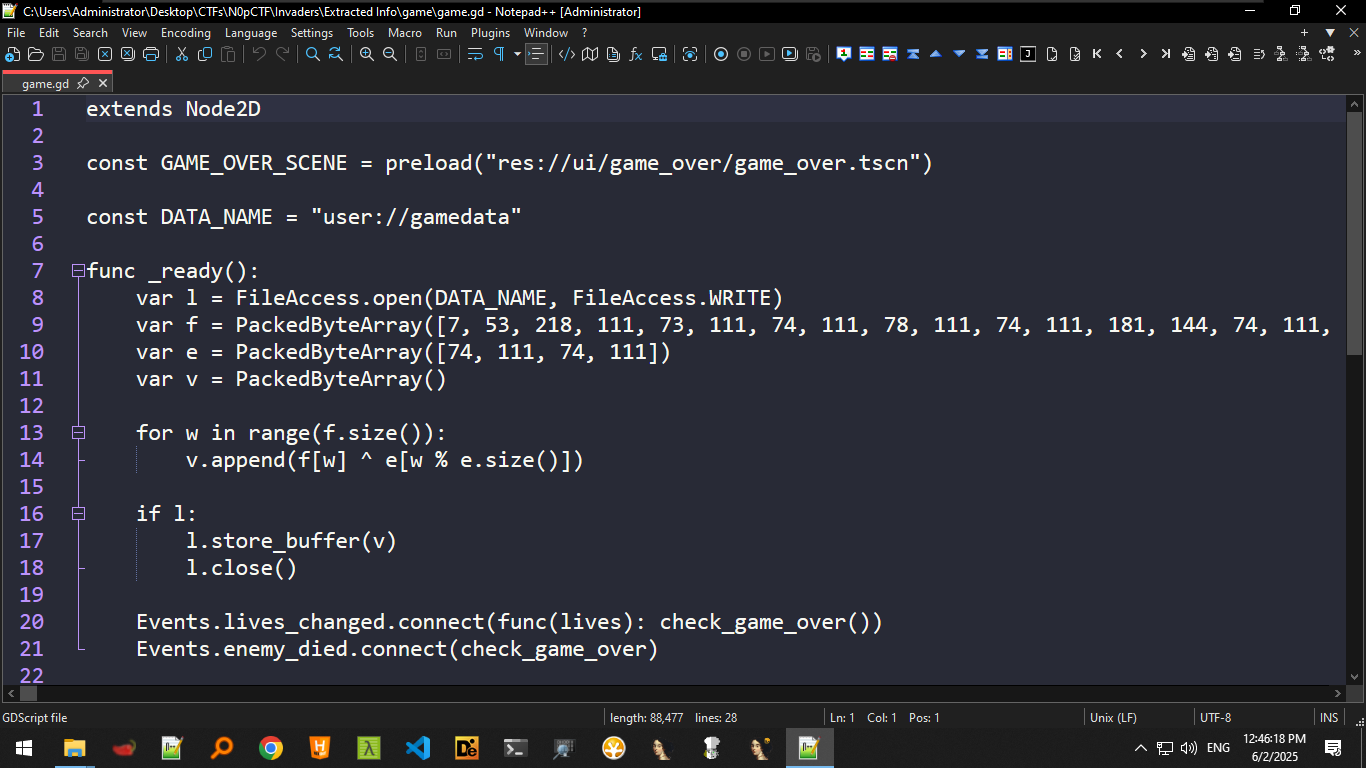 We can see that the script does some stuff related to the game itself, and it sets up a byte array f