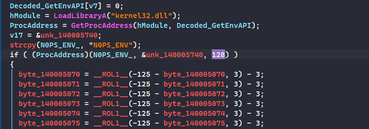 , so we have an idea that it attempts to resolve this API call at runtime (which is why we couldn’t see this function in the IAT)