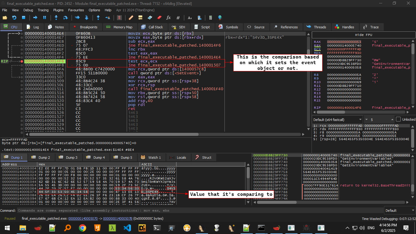 statement will fail and the program will return and exit, unless you can patch the instructions responsible for the environment variable check (Program was loaded atIMAGE_BASE