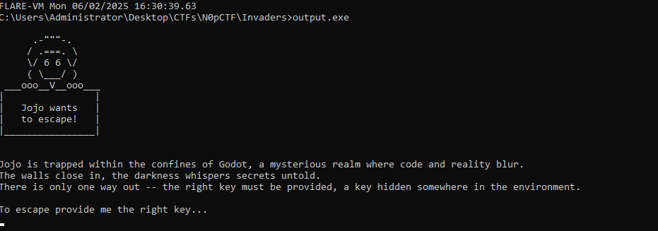 One problem though, when I first decompiled the GDScript file it gave me an executable but it was about saving Jojo instead, not Espeax: