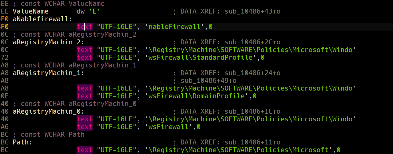 The kernel driver initializes itself by setting up the callback function that is triggered when the driver is unloaded which creates keys in the registry that creates a group policy that disables Windows Firewall entirely from the system.