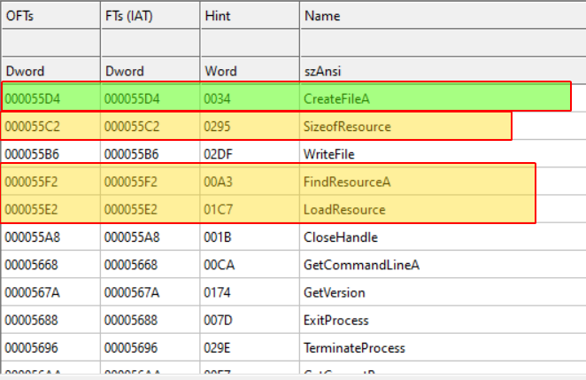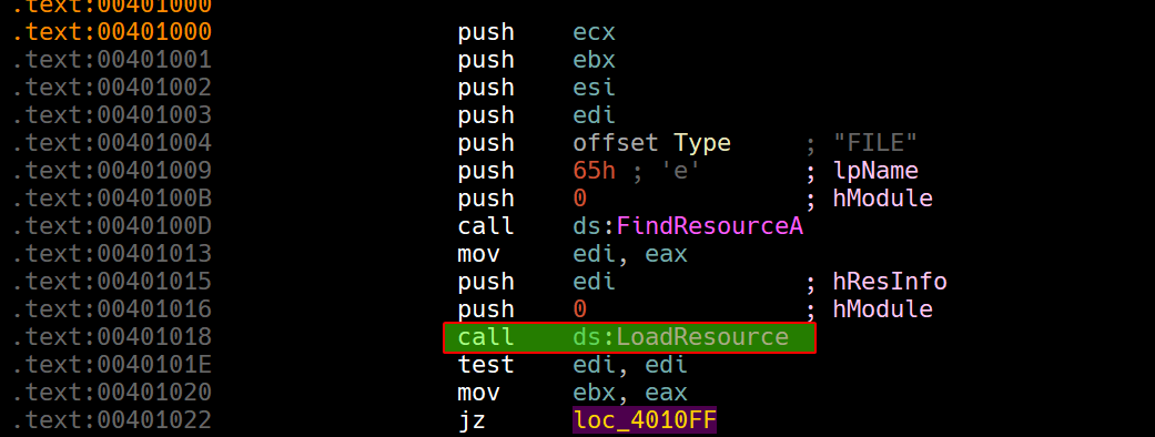We can see that the malware first loads the resource: