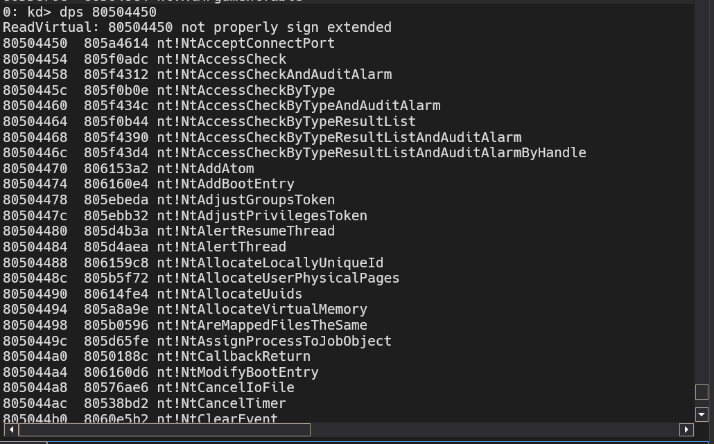 We know from static analysis EAX contains a pointer to the SSDT pointer, confirmed by dynamic analysis.