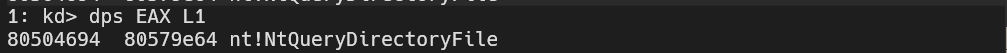 And if we load the driver once more, we can see that we’ll hit that breakpoint as soon as it finds NtQueryDirectoryFile’s entry.