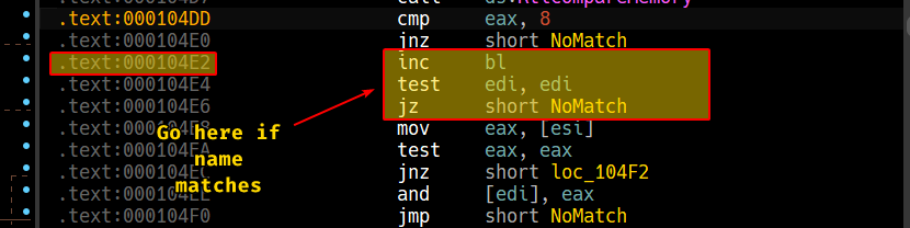 Now, since we know that the driver will use RtlCompareMemory and will take a path if it returns 8, we can set a breakpoint here: