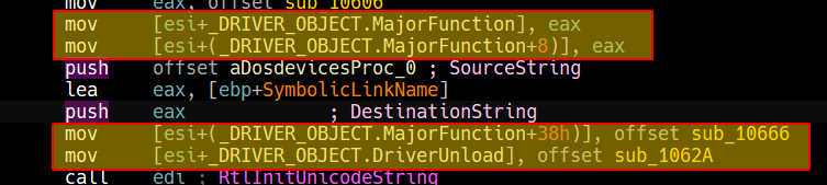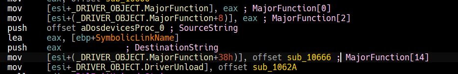 Afterwards, we can see that it begins initializing DriverObject->MajorFunction[28].