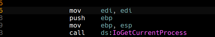 Since IDA is able to identify the imports of the driver and also having FLIRT signatures, we can see the function much more clearly than the kernel debugger.