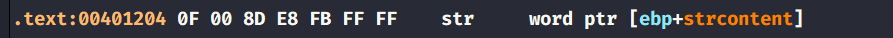 At address 401204, we see an str instruction which stores the task state segment into a variable.