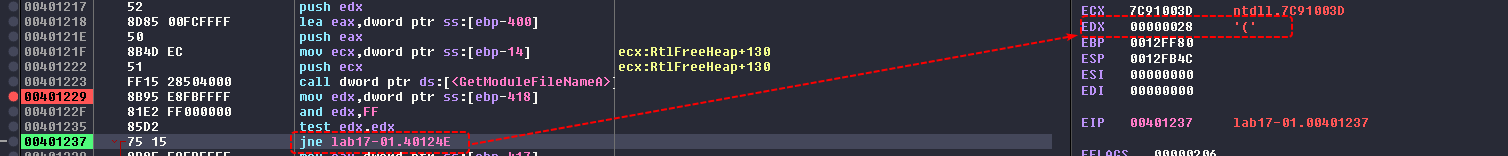 At _main:401A2F, we can see the functions that are related to resource extraction similar to how Lab12-02.exe works, so we’ll need to NOP out the jump instruction to ensure normal flow of execution.