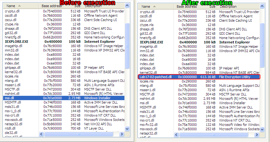 InstallRT copies a version of the malicious DLL into the system32 directory, then it attempts to find the PID of the iexplore.exe process through enumeration and injects the copy using normal CreateRemoteThread() method.