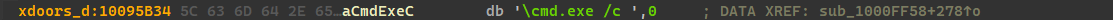 - Use the Strings window to locate the string \cmd.exe /c in the disassembly. Where is it located?