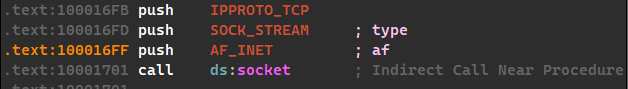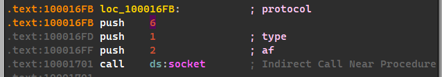 - At 0x10001701 is a call to socket. What are the three parameters? 108 Chapter 5