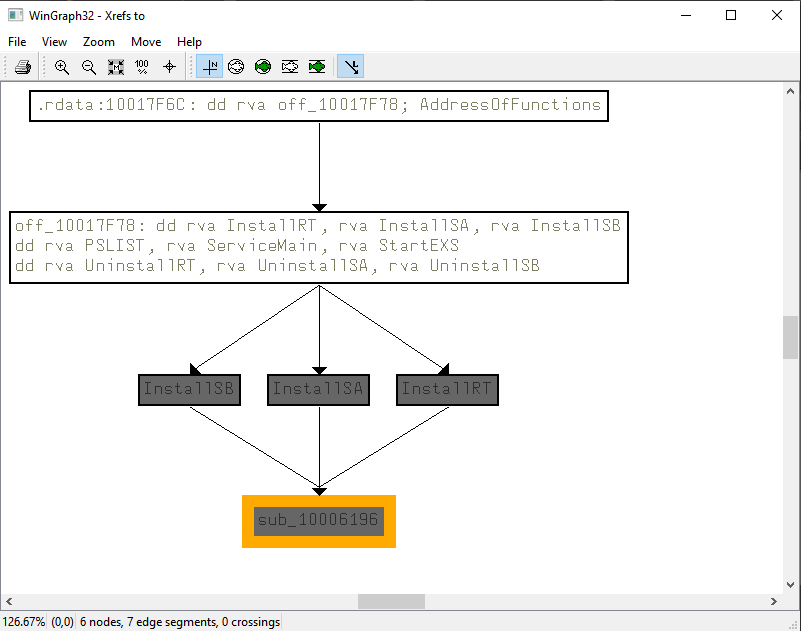 - Use the graph mode to graph the cross-references from sub_10004E79. Which API functions could be called by entering this function? Based on the API functions alone, what could you rename this function?